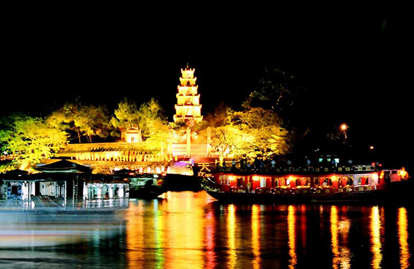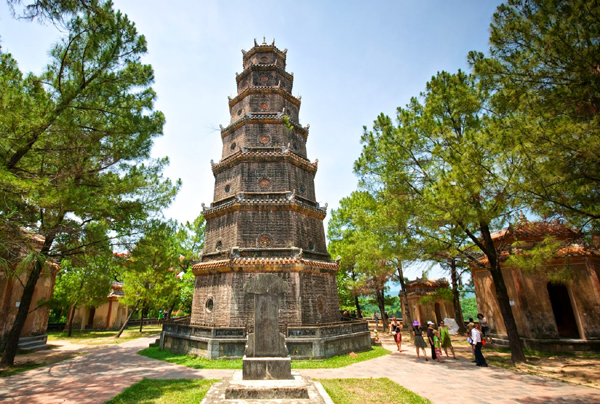 Cách Đà Nẵng chỉ 100km là Huế - cố đô xưa của Việt Nam – nơi tọa lạc của chùa Thiên Mụ - một trong những ngôi chùa cổ nhất Việt Nam, được xây từ thời Nguyễn cách đây 400 năm trước. Với 7 tầng tháp gạch, đây cũng là tháp chùa cao nhất đất nước. Chùa nằm cạnh sông Hương với vẻ đẹp nên thơ, không gian tĩnh mịch tạo nên một tổng thể với nét cổ kính, trang nghiêm khác lạ.