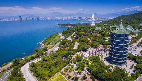 Đứng từ trên chùa, bạn có thể nhìn được toàn bộ khung cảnh thành phố, núi rừng và biển đảo Sơn Trà một cách tổng thể nhất. Buổi tối, nếu đứng từ cổng chùa nhìn xuống, du khách có thể chiêm ngưỡng nét đẹp của thành phố Đà Nẵng lấp lánh khi đêm về, với những vệt đèn thắp sáng cả một đường phố biển.