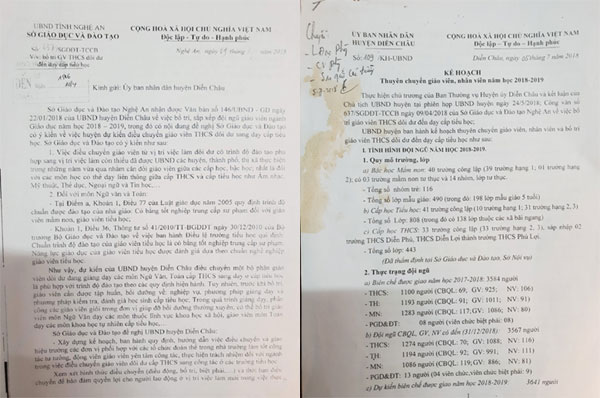 Ngày 5.7.2018, UBND huyện Diễn Châu ban hành văn bản số 109 về việc luân chuyển giáo viên THCS dôi dư xuống dạy tiểu học. Về tiêu chí giáo viên bị điều chuyển, ông Long cho hay, theo kế hoạch của UBND huyện Diễn Châu không xác định đối tượng bị điều chuyển mà chỉ xác định đối tượng không điều chuyển.