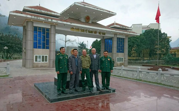 Các chiến sĩ biên phòng và cựu binh biên phòng bên cột mốc 261, cửa khẩu Thanh Thủy, Hà Giang - nơi con sông Lô chảy vào đất Việt