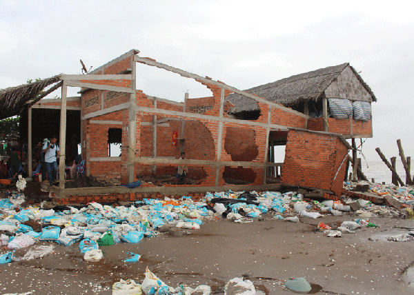 Một điểm sạt lở bờ biển nghiêm trọng tại Bến Tre.