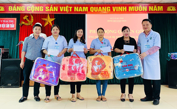 Trong buổi phát động, lãnh đạo Bệnh viện và BCH Công đoàn cũng đã trao 07 phần quà cho những CBVCLĐ bị thiệt hại nặng sau đợt mưa lũ vừa qua.
