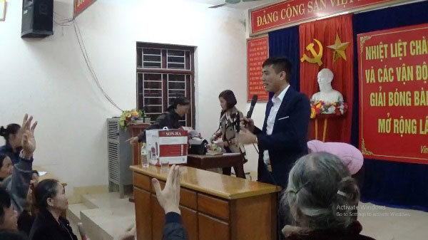 Nhà văn hóa khu hành chính 15, phường Liên Bảo, thành phố Vĩnh Yên (Vĩnh Phúc) được Công ty TNHH Dịch vụ và Thương mại KTV tận dụng làm điểm tổ chức giới thiệu, bán hàng giả khiến người dân bức xúc. Hoạt động này liệu có sự "tiếp tay" của cán bộ cơ sở?