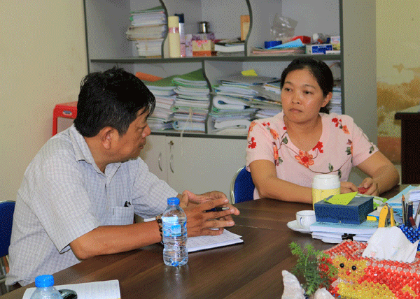 Bà Nguyễn Thị Hương Thảo, Chủ tịch UBND xã trao đổi với phóng viên