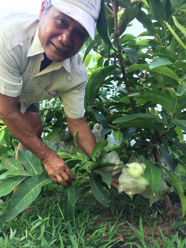 Cán bộ phụ trách nông nghiệp thuộc UBND xã Đông Bình Thạch Mo Nát nói với chúng tôi thực tế sản xuất: giờ trồng gì cũng bọc hết, từ mận tới ổi, xoài...