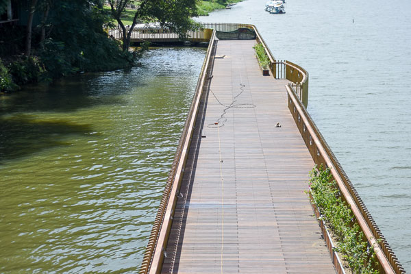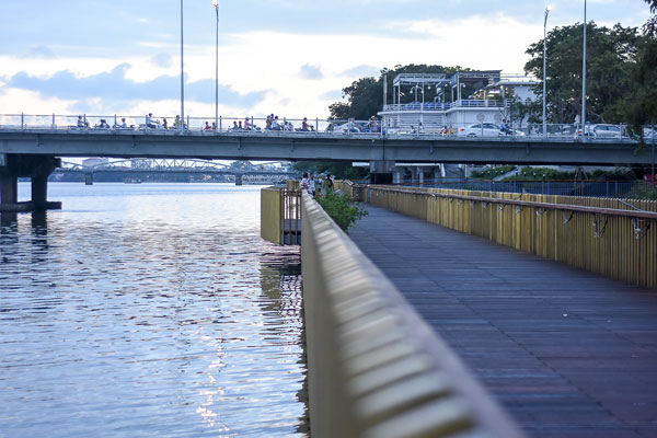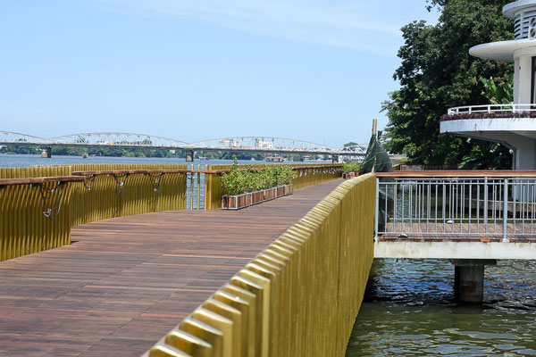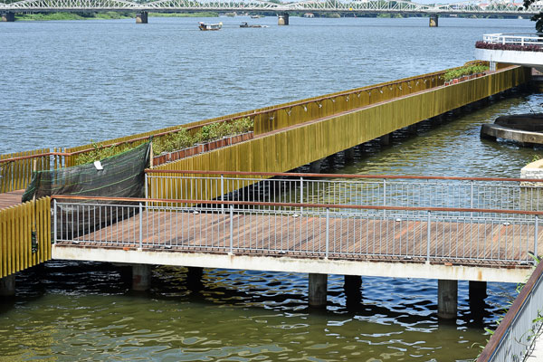 Con đường gỗ lim "độc nhất vô nhị"được làm sát ngay bên bờ sông Hương