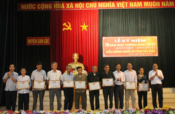 Nhân dịp này, UBND huyện Can Lộc cũng đã tặng giấy khen cho 17 tập thể đã có thành tích xuất sắc trong phong trào đền ơn đáp nghĩa và những người có công tiêu biểu gương mẫu trong xây dựng và phát triển kinh tế - xã hội của địa phương.