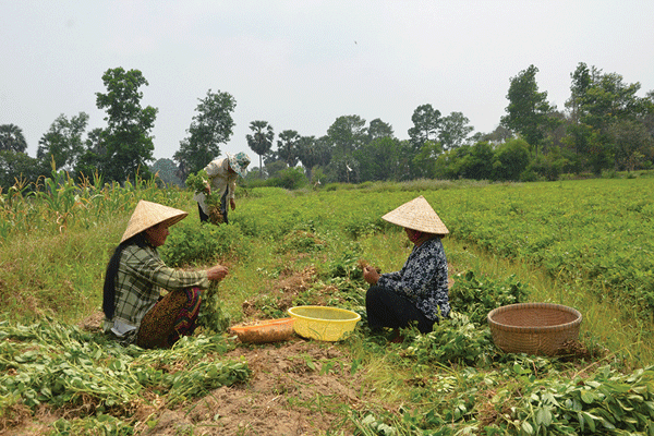 Đối với những hộ có đất sản xuất ở các cánh đồng ruộng trên, ven chân núi và khu vực nằm ngoài trạm bơm điện, xa nguồn nước, việc nắm vững kỹ thuật canh tác, chọn canh tác những giống cây trồng ngắn ngày, thích hợp vùng đất núi và nhu cầu nước tưới sẽ ít, khả năng né được khô hạn khi vào cao điểm bảo đảm thời vụ sản xuất. Đang tranh thủ thu hoạch 1 công đậu phộng, chị Néang Nul (xã Ô Lâm, Tri Tôn) cho biết: “Trồng đậu phộng dễ phát triển và năng suất tốt, khoảng 3 tháng cho thu hoạch. Trong thời gian đó, chỉ cần tưới khoảng 6 lần nước là đủ. Mùa này nắng hạn quá, nhưng phải ráng làm, bỏ đất trống, uổng lắm. Khi mưa xuống sẽ khỏe hơn”.