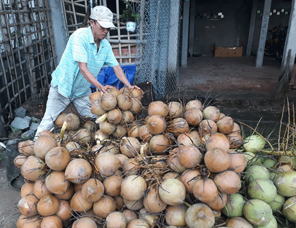 Người dân huyện Châu Thành có thu nhập ổn định từ trồng dừa.