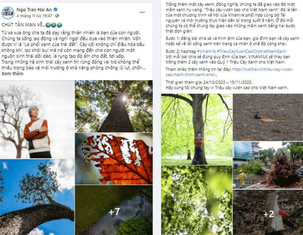 Cũng có rất nhiều bài đăng tham gia chiến dịch với lời kêu gọi hãy cùng trồng cây và bảo vệ thiên nhiên, vì đó là cách con người bảo vệ cuộc sống của mình trước thiên tai, biến đổi khí hậu. “Trồng thêm một cây xanh, đồng nghĩa chúng ta đã gieo vào đó một mầm xanh hy vọng”, chia sẻ của Facebook Nguyen Khanh.