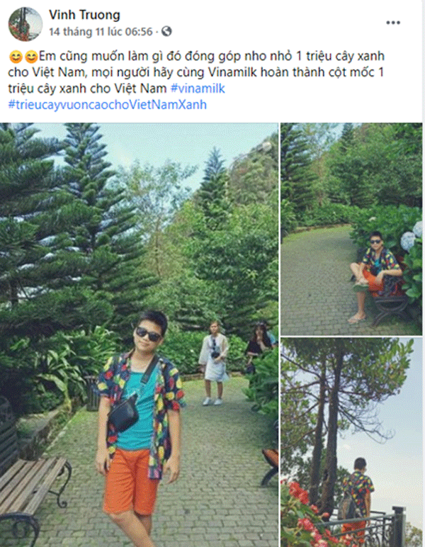 Ông Nguyễn Quang Thái, Giám đốc Phát triển Hoạt động Cộng đồng của Vinamilk chia sẻ: “Khi thực hiện chiến dịch này, điều Vinamilk hướng đến là khơi dậy sự quan tâm của cộng đồng đối với môi trường, cây xanh, thiên nhiên. Những câu chuyện đẹp khi được chia sẻ sẽ lan tỏa đến cộng đồng và chỉ khi thay đổi trong chính nhận thức, chúng ta mới có thể cùng bảo vệ môi trường, thiên nhiên một cách bền vững. Vinamilk rất trân trọng sự chung tay của cộng đồng cùng Vinamilk hoàn thành mục tiêu trồng 1 triệu cây xanh cho Việt Nam!”
