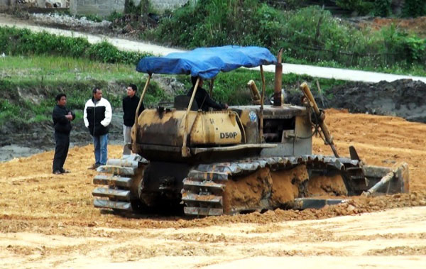 Nhiều máy móc ngang nhiên san ủi trái phép mặc dù chính quyền đã lập biên bản đình chỉ.