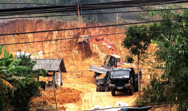 Đặc biệt tại thôn Lõng Khu, xã Sơn Nam, huyện Sơn Dương mỗi ngày hàng trăm m3 đất đồi được san ủi phục vụ cho công trình xây dựng cây xăng.