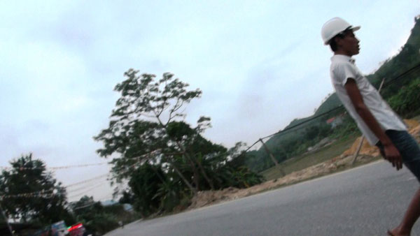 Người tự xưng là Vinh, chỉ huy công trường ra ngăn cản phóng viên tác nghiệp ghi hình