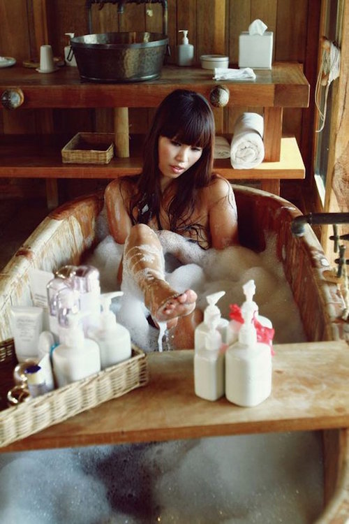 Giống như Phạm Hương, người đẹp cũng tận dụng bồn tắm làm hậu cảnh cho bộ ảnh nội y.