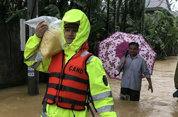Với phương châm “Không bỏ ai lại phiá sau trong cơn lũ lụt”, CBCS Công an tỉnh Thừa Thiên - Huế cũng đã nhanh chóng có phương án, đến từng hộ dân cứu trợ người dân. Mì tôm, bánh và một số nhu yếu phẩm khác đã được các CBCS sử dụng cano, dầm mình trong mưa lụt, lao mình vào biển nước để hỗ trợ kịp thời giúp đỡ những hoàn cảnh khó khăn.