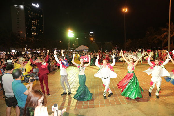 Tại hai điểm dừng chân trước UBND TP Đà Nẵng cũ trên đường Bạch Đằng và công viên Biển Đông, các nghệ sĩ rời xe hoa xuống phố, trình diễn những tiết mục nghệ thuật đặc trưng của mỗi quốc gia và giao lưu với khán giả.