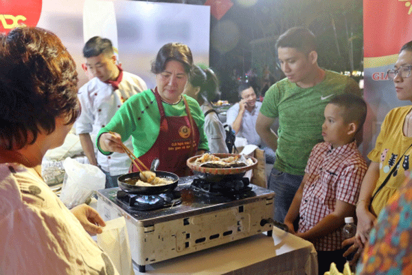 Nghệ nhân giữ gìn ẩm thực cung đình Huế biểu diễn tay nghề.