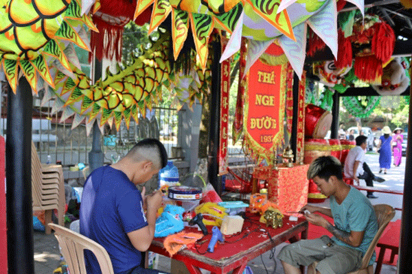 Một gian hàng giới thiệu nghề chế tác lân, sư, rồng tại Huế.