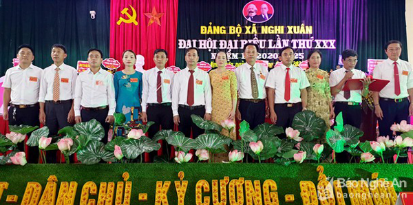 Ban Chấp hành Đảng bộ xã Nghi Xuân nhiệm kỳ 2020 - 2025 ra mắt nhận nhiệm vụ. Ảnh: Báo Nghệ An