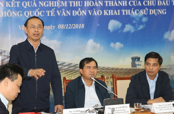 Cũng tại buổi kiểm tra, Thứ trưởng Bộ xây dựng Lê Quang Hùng, Phó chủ tịch thường trực Hội đồng nghiệm thu nhà nước các công trình xây dựng đã thống nhất với ý kiến các thành viên Hội đồng về chất lượng, thiết kế Cảng hàng không quốc tế Vân Đồn. Đồng thời yêu cầu chủ đầu tư sớm hoàn thành các hạng mục công trình phụ trợ hàng rào, vệ sinh môi trường, biển chỉ dẫn, an toàn giao thông đảm bảo tiến độ, mỹ quan công trình…