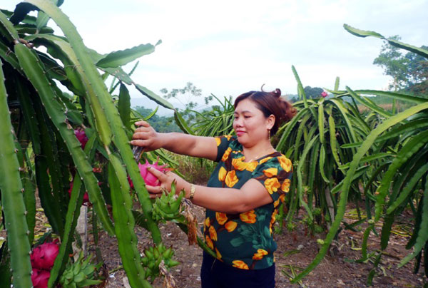 Trồng thanh long đã giúp gia đình chị Hoàng Thị Phong ở thôn Bòng Vươn lên thoát nghèo và làm giàu trên quê hương cách mạng.