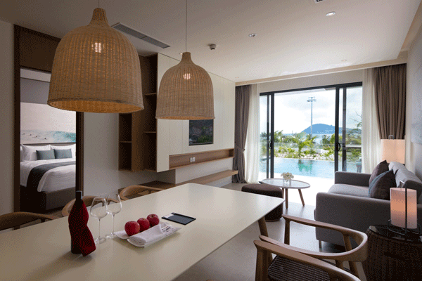 Sở hữu tới 11 loại căn hộ nghỉ dưỡng khác nhau, condotel 5 sao đầu tiên bên Bãi Khem có khả năng đáp ứng nhu cầu của nhiều đối tượng du khách, từ các cặp đôi đến những nhóm bạn và gia đình lớn. Các căn hộ nghỉ dưỡng được thiết kế nhịp nhàng theo hình bậc thang, tựa lưng vào núi, hướng tầm nhìn ra đại dương xanh ngọc, mang tới những không gian thư giãn phóng khoáng cho du khách.