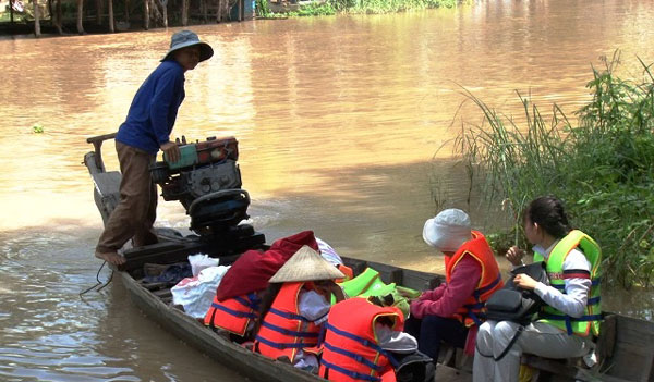 Được biết, những ngày này, đoạn đường đến trường của khoảng 20 em học sinh cấp THCS khu vực ấp Giồng Bàn, xã Thường Phước 1 bị ngập sâu 2 - 3m. Mỗi chuyến đò đến trường của các em kéo dài 30 - 45 phút.