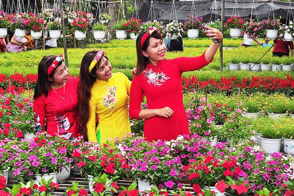 Khách tham quan làng hoa Sa Đéc. Ảnh: Nguyễn Toàn