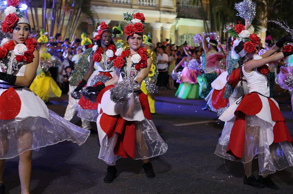Hơn 80 vũ công chuyên nghiệp đến từ nhiều quốc gia châu Âu và châu Mỹ, 4 xe hoa được trang trí cầu kỳ loài mang hình ảnh những hoa đặc trưng của 8 quốc gia Nga, Brazil, Bỉ, Phần Lan, Ý, Anh, Trung Quốc và Việt Nam tham dự Lễ hội pháo hoa quốc tế đã biến đường phố Đà Nẵng trở thành “đại tiệc hội hè” đầy phấn khích.