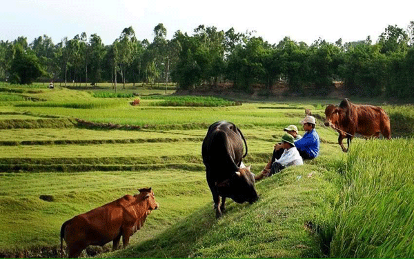 Không chỉ nhiều thóc lúa. Đồng bãi quê tôi còn có đủ loại cá tôm. Các cụ kể: Ngày xưa mỗi lần ngập lụt là dịp thi tài bắt cá. Cá từ sông Yên rủ nhau lên đồng tìm nơi vật đẻ. Nơm vác trên vai, cái giỏ hình con vịt buộc ngang lưng, người đánh cá lặng lẽ bước dò theo dấu cá. Đôi cá yêu nhau say sưa cứ quấn vào nhau rồi lại buông ra, lờ lững vờn ngọn cỏ. Vài bước vọt lên, cái nơm vung nhẹ, một nhát là úp gọn. Ai đoán chính xác đôi cá quần nhau cách bụi năn đang rung mấy vòng nơm thì người ấy úp trúng…