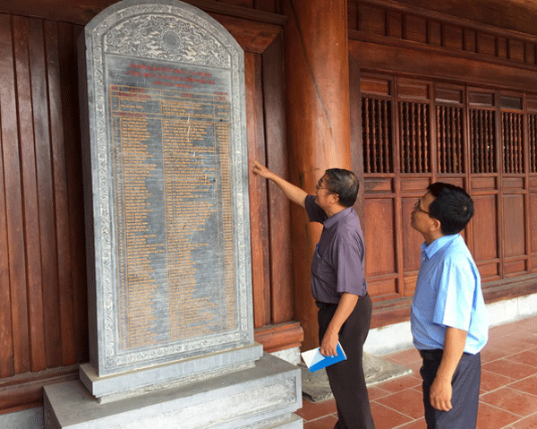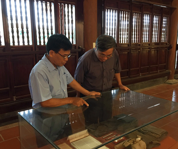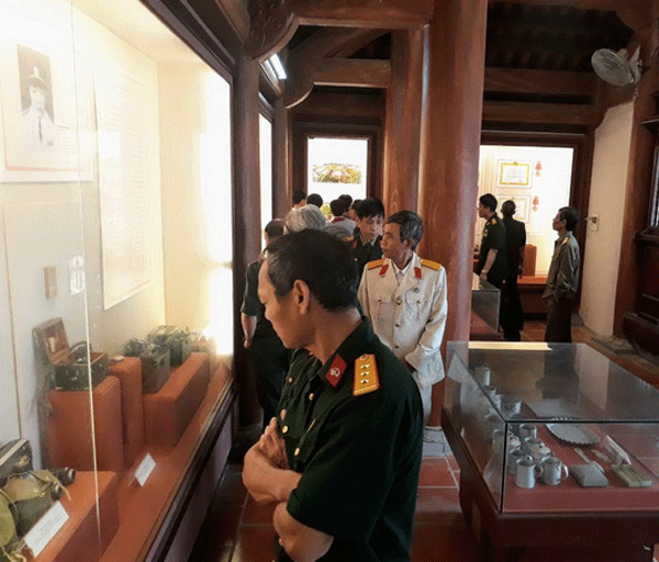 Cán bộ, chiến sĩ, nhân dân xem trưng bày gần 400 hiện vật, kỷ vật trưng bày tại Đền liệt sĩ huyện Vĩnh Tường.