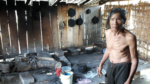 Ông Xin trong căn nhà bếp trống hoang, mưa là ướt