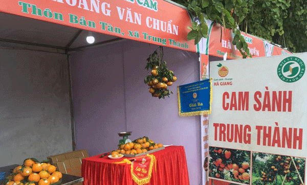 Gian hàng trừng bày, giới thiệu sản phẩm Cam Sành Vị Xuyên tại hội chợ năm 2019