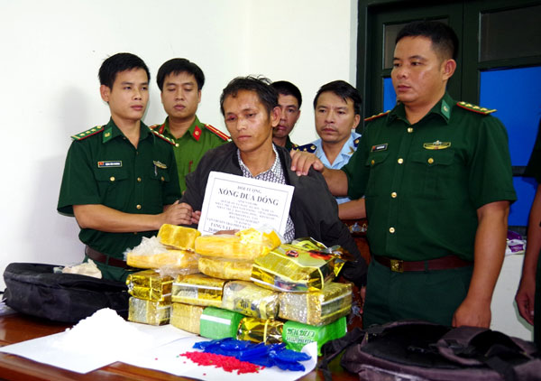 Sau một thời gian theo dõi, vào lúc 15 giờ chiều ngày 14/10, tại km 80+500 trên Quốc lộ 8A thuộc địa bàn xã biên giới Sơn Kim 1, huyện Hương Sơn (Hà Tĩnh). Lực lượng Phòng chống ma túy ma túy và tội phạm BĐBP Hà Tĩnh chủ trì phối hợp với Đồn Biên phòng cửa khẩu quốc Cầu Treo; Phòng Cảnh sát điều tra tội phạm về ma túy (PC47) Công an Hà Tĩnh; Công an huyện Hương Sơn và Cục Hải quan Hà Tĩnh đã bắt quả tang đối tượngXồng Dua Dóng, 31 tuổi, quê xã Na Ngoi, huyện Kỳ Sơn (Nghệ An). Hiện trú tại bản Nọng Póng, huyện Khăm Cợt, tỉnh Bô Ly Khăm Xay (Lào) khi đang vận chuyển 2 ba lô chứa đựng 10kg ma túy đá cùng 20.000 viên ma túy tổng hợp.