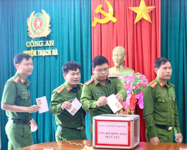 Theo đó, mỗi CBCS Công an huyện Thạch Hà quyên góp, ủng hộ tối thiểu một ngày lương. Số tiền quyên góp được sẽ chuyển qua Ủy ban MTTQ huyện Thạch Hà để ủng hộ người dân bị ảnh hưởng, thiệt hại trong đợt lũ vừa qua.