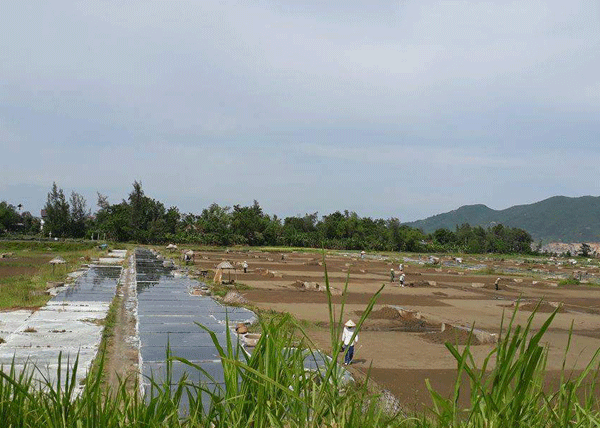 Nhận được phản ánh của người dân, chúng tôi đã tìm về cánh đồng sản xuất muối của người dân thôn Châu Hạ để tìm hiểu. Tuy đang vào mùa hè, những ngày nắng nóng sẽ là thời điểm sản xuất muối tốt nhất, nhưng giữa cánh đồng chỉ thưa thớt một số người dân tham gia sản xuất muối.