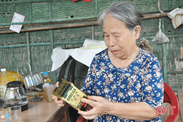 Bà Trương Thị Huệ (thôn 1, xã Hà Linh, Hương Khê) thất vọng vì công dụng ghi trên vỏ hộp không như lời quảng cáo tại hội thảo. Ảnh: Báo Hà Tĩnh