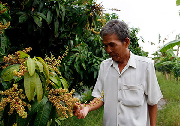 Nông dân Lê Văn Mành kỳ vọng mùa xoài tết năm nay đạt năng suất cao.