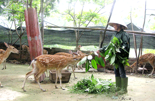 Mô hình nuôi hươu sao ở xã Đại Đình (Tam Đảo) đem lại thu nhập cao cho người dân. Ảnh: Tuyết Nhung