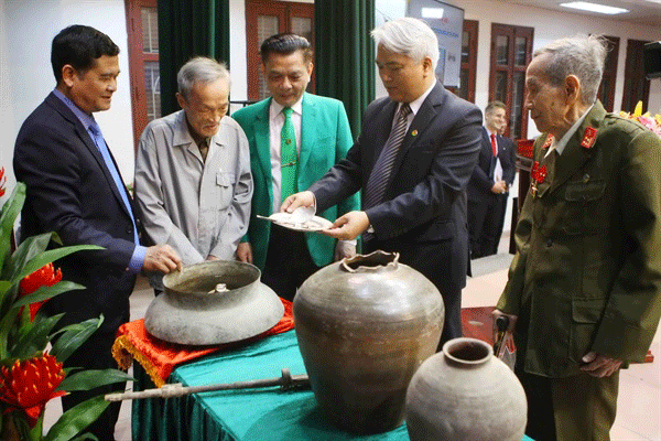 Hiến tặng tài liệu, hiện vật liên quan đến Chiến dịch Điện Biên Phủ. Ảnh: Thanh Tùng