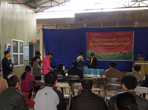 Không khí nhận bò tại xã Lãng Ngâm vui như hội, người dân ở các bản tít tận non cao của xã cũng lần về chứng kiến và chia vui cùng các hộ gia đình được nhận bò hôm này. Ông Lý Minh Tuấn, Giám đốc Quỹ Thiện tâm của Tập đoàn Vingroup cho biết, là chương trình nằm trong chuỗi hoạt động từ thiện mà tập đoàn đã thực hiện nhiều năm nay, tuy nhiên, đây là lần đâu tiên chương trình hỗ trợ bò giống sinh sản được tổ chức tại tỉnh Bắc Kạn. Mục đích chương trình nhằm hỗ trợ cho người nghèo thoát nghèo một cách bên vững. Nhà cung cấp được lựa chọn lần này tại tỉnh Tuyên Quang. Theo ông Tuấn, do điều kiện khí hậu, thổ nhưỡng vùng Tuyên Quang khá tương đồng nên bò dễ thích nghi khi được chăn nuôi tại Bắc Kạn. Về chất lượng bò, đảm bảo đạt 155kg trở lên đối với mỗi cá thể. Bò được trao cho bà con đã được kiểm dịch, tiêm phòng và theo dõi kỹ lưỡng, ông Lý Minh Tuấn cho biết thêm.