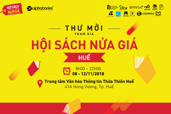 Lần đầu tiên Alpha Books tổ chức Hội sách nửa giá lớn nhất Huế với quy mô hơn 300m với mong muốn các độc giả nói chung và các bạn sinh viên Việt Nam nói riêng có thể sở hữu cho mình một kho tàng tri thức giàu có bằng việc đọc sách. Vì vậy, trong hội sách lần này có rất nhiều hoạt động văn hóa ý nghĩa được tổ chức. Ngoài ra, hơn 100,000 đầu sách chiết khấu 30% - 60%, đồng giá 5k, 10k, 20k.