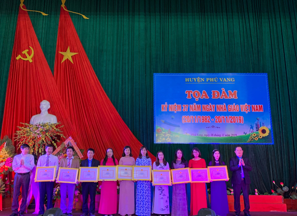Hòa trong không khí hân hoan cả nước chào đón ngày Nhà giáo Việt Nam, 20/11/2019, đại diện lãnh đạo ngành giáo dục huyện Phú Vang, tỉnh Thừa Thiên Huế đã bày tỏ sự trân trọng và chúc mừng quý thầy cô giáo, các cán bộ quản lý, nhân viên đã và đang làm việc trong ngành giáo dục trên địa bàn huyện Phú Vang nói riêng và trên cả nước nói chung.