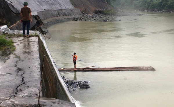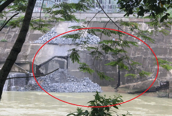 Một đoạn tường kè kênh xả sau nhà máy thủy điện Sông Lô 2 bị sụt. Ảnh: Lê Hoàn