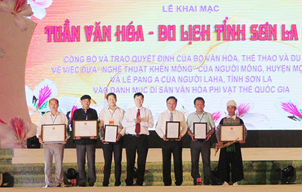 Tại Lễ khai mạc, BTC đã công bố quyết định của Bộ VHTTDL về việc đưa “Nghệ thuật khèn Mông” của người Mông, huyện Mộc Châu; Lễ hội Pang A của người LaHa, tỉnh Sơn La vào danh mục di sản văn hóa phi vật thể quốc gia. Hai di sản văn hóa phi vật thể được công nhận lần này có tính đại diện, thể hiện bản sắc của cộng đồng, địa phương, phản ánh sự đa dạng văn hóa và sáng tạo của con người, được kế tục qua nhiều thế hệ. Việc đưa “Nghệ thuật khèn Mông” và Lễ Pang A vào Danh mục di sản Văn hóa phi vật thể quốc gia đã góp phần nâng tổng số di sản văn hóa phi vật thể quốc gia trên địa bàn tỉnh Sơn La lên 7 di sản.