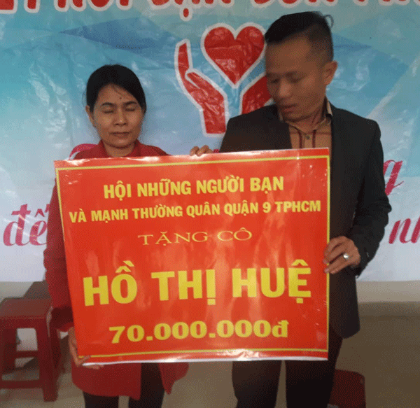 Nhóm bạn Hội những người bạn và mạnh thường quân tại TP. HCM trao 70 triệu đồng cho cô Huệ