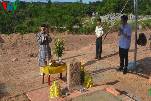 Thắp hương trước khi xây dựng lại lăng mộ vua Tự Đức. Ảnh: VOV.VN