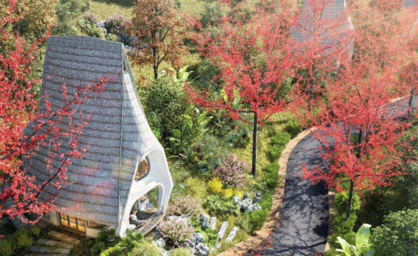 Lấy hình tượng từ những chiếc Nón lá xinh đẹp, những căn biệt thự nhà Nón được thiết kế với kiến trúc độc bản, nhẹ nhàng, thanh thoát, như gợi lên hình ảnh chiếc nón cổ truyền đã đi vào thơ ca của hàng trăm thế hệ. Cùng với đó, việc sử dụng tối đa những vật dụng từ thiên nhiên trong thiết kế nội thất như tre, nứa… tạo nên sự thân thiện, bắt mắt cho những căn biệt thự nhà Nón. Mỗi căn biệt thự đều được thiết kế như một resort thu nhỏ với đầy đủ những tiện ích cao cấp như mini pool, nhà hàng, hầm rượu, vườn BBQ, đường dạo bộ chủ đề…. cùng vô vàn điểm check-in khác, hứa hẹn sẽ là thiên đường nghỉ dưỡng cho bất kỳ vị khách nào.