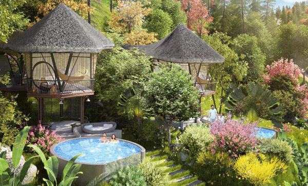 Khu nghỉ dưỡng là sự giao thoa của những nét kiến trúc độc đáo và phá vỡ khoảng cách giữa thiên nhiên và kiến trúc, khi toàn bộ khu resort được chia làm 4 phân khu: Nhà Nơm, nhà Nón, nhà Tổ Chim, nhà Rông. Mỗi phân khu đều được chăm chút, đầu tư hệt như một tác phẩm nghệ thuật thật sự, mang tới kỳ nghỉ dưỡng trong mơ, mọi cảm xúc đều được thăng hoa giữa thiên nhiên, cảnh quan tuyệt đẹp.